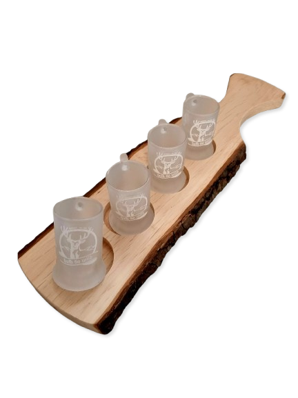 Lieferung inkl. 4 satinierten Schnapsstamper "halb so wild" 2cl (3,7cl)