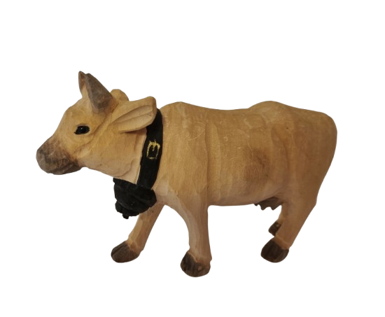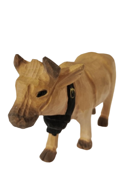 Die geschnitzte Holzkuh mit Kuhschelle – ein echtes Unikat!Die rustikale Deko mit alpinem Charme, wurde detailverliebt gefertigt